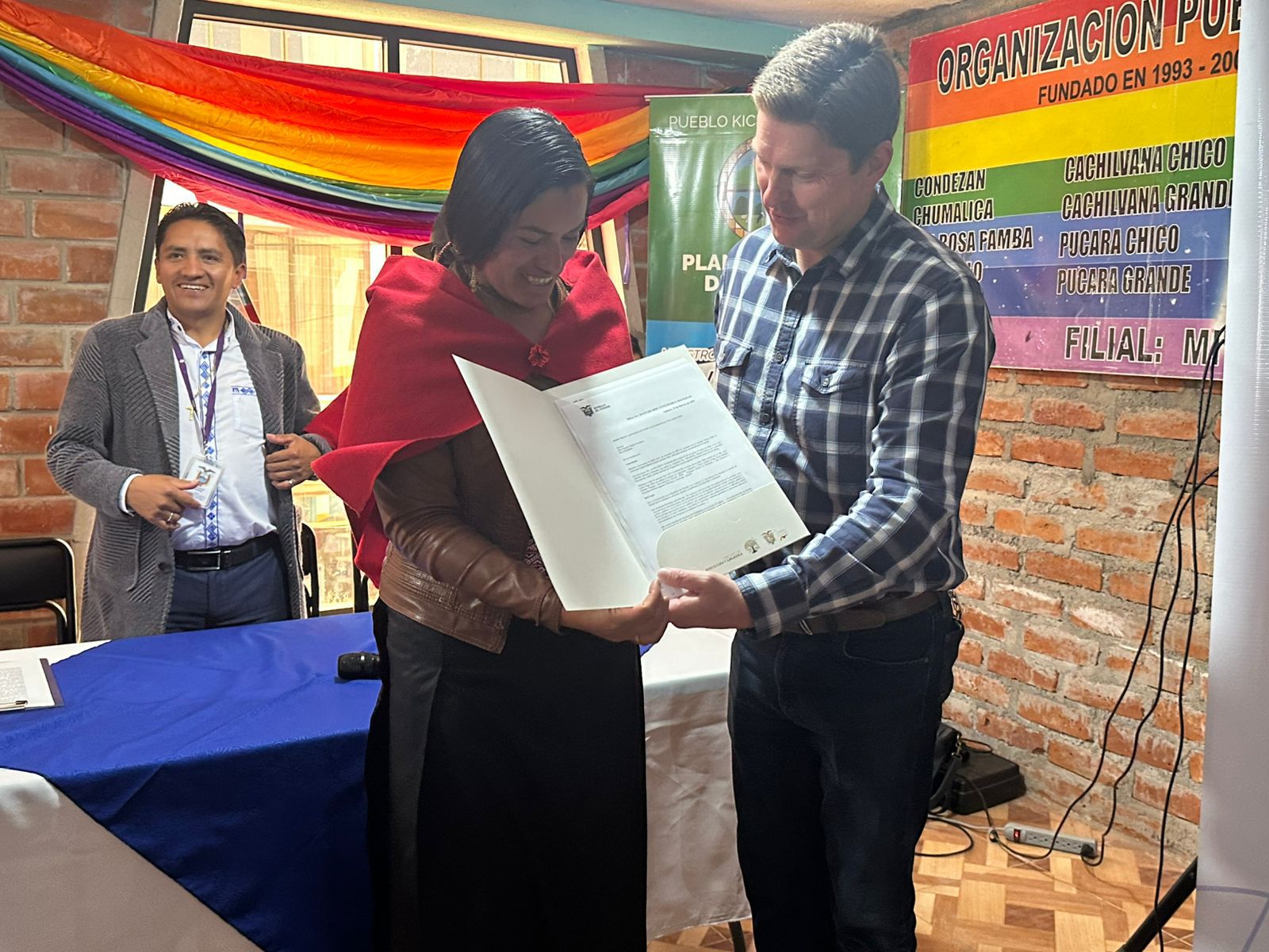 En representación de los nuevos cabildos, José Verdezoto, dirigente del cantón Mocha, agradeció la entrega oportuna de los nombramientos y expresó que “estamos comprometidos de ejercer nuestras funciones con responsabilidad y transparencia durante el año de gestión, priorizando el bienestar de las comunidades y el impulso a la producción de nuestros territorios”.