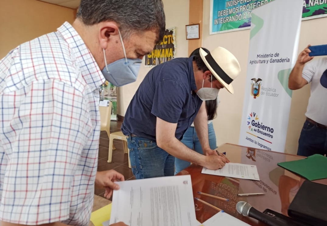 Azuay, 08 de septiembre de 2021.- Sesenta y cinco familias agricultoras de la parroquia Molleturo, cantón Cuenca, provincia del Azuay, recibieron el Sistema de Riego Tecnificado Putucay, una vez que este miércoles firmaron la correspondiente acta de transferencia.