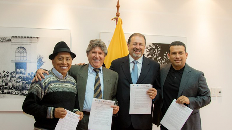 Firmaron el documento, el titular del MAE, Tarsicio Granizo; el ministro de Agricultura y Ganadería, Rubén Flores; el secretario del Agua, Humberto Cholango, y el secretario de Senplades, Edzon Romo.