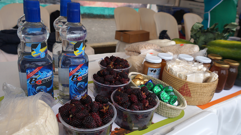 Algunos de esos productos tienen valor agregado, ya que la materia prima ha sido convertida en harinas, quesos, chocolates, vinos mermeladas, mientras que los productores ofrecen hortalizas verduras, legumbres, frutas.