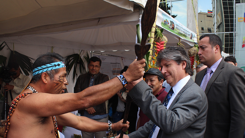 Rubén Flores, ministro de Agricultura y Ganadería, indicó que en este espacio, agricultores comercializan directamente sus productos que “simbolizan la riqueza amazónica con la que contamos. Aquí se ve el trabajo al añadir valor agregado a productos alimenticios y artesanales”.