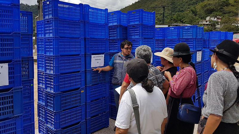 760 gavetas plástica recibieron 11 asociaciones agro productivas de la provincia de Zamora Chinchipe, con el propósito de mejorar el almacenamiento y traslado de los productos desde los sitios de producción hasta los mercados.
