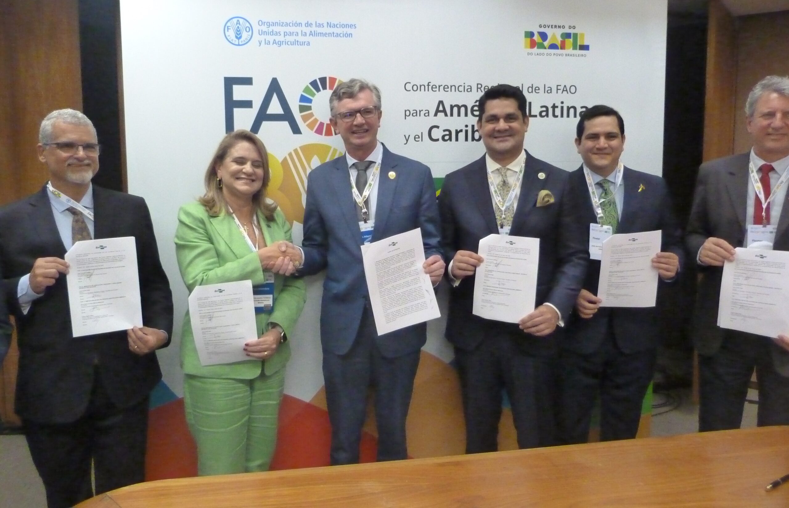 El convenio lo firmaron José Antonio Hidalgo, por la AEBE; Silvia María Fonseca Silveira, por Embrapa, y el ministro de Agricultura Ganadería y Pesca, Juan Carlos Vega.
