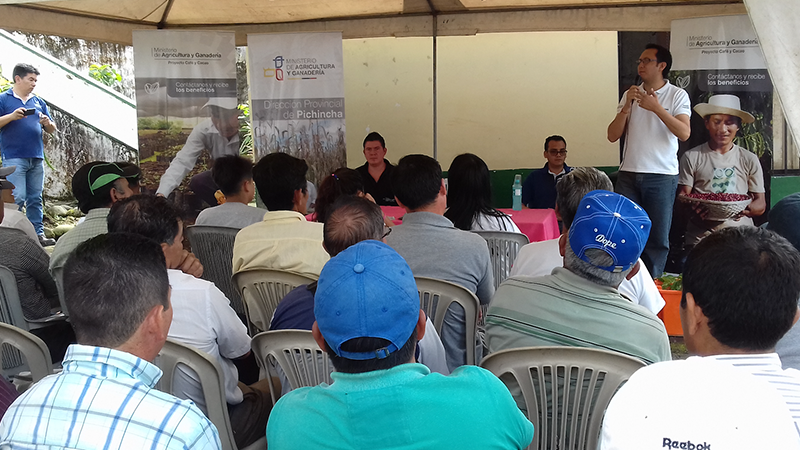 Alrededor de 55 productores asistieron a la entrega de insumos agrícolas que se efectuó en las oficinas del Ministerio de Agricultura y Ganadería (MAG) del cantón Pedro Vicente Maldonado.