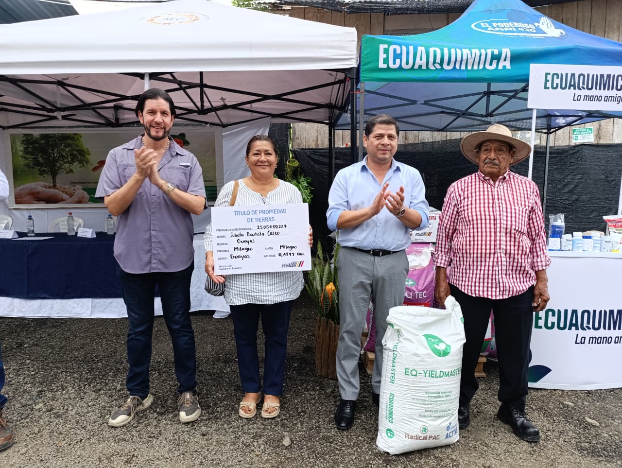Asimismo, se otorgaron 7 títulos de propiedad a 5 productores de Santa Lucía y 2 de Milagro, beneficiando a más de 28 personas productoras dedicadas a cultivos de arroz, cacao, plátano y mango. Esta acción busca regularizar la posesión de las tierras, garantizando seguridad jurídica y facilitando el acceso a créditos y otros beneficios.