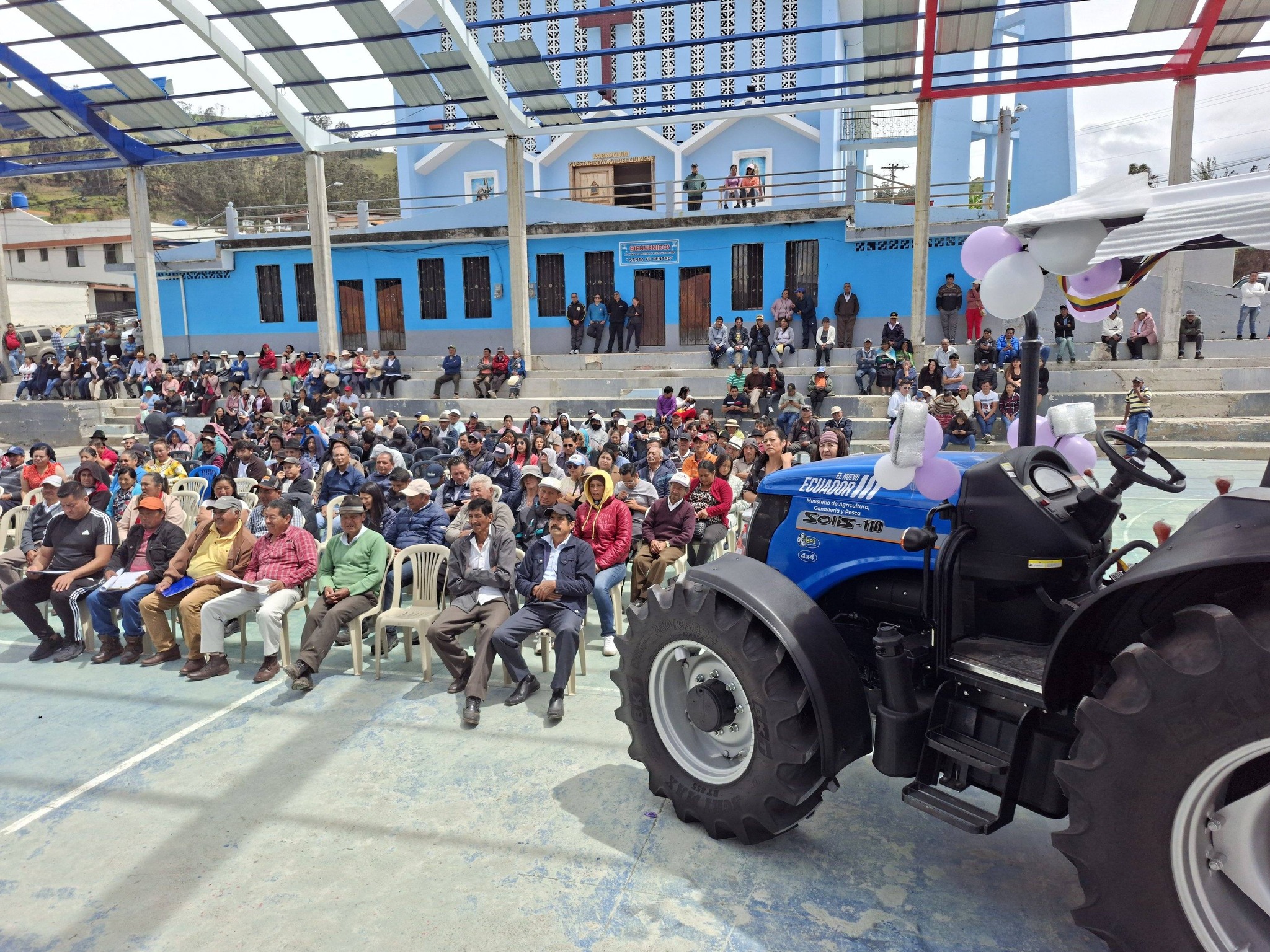 En este marco, se asignó una Solución de Mecanización Agroproductiva (SOMA) a la Junta de Riego y Drenaje Santa Fe, en el cantón Guaranda, que beneficiará a 624 productores dedicados al cultivo de maíz suave, fréjol y trigo. Esta maquinaria, que incluye un tractor con implementos agrícolas, forma parte del componente 10 del Proyecto Integral de Diversificación Agroproductiva y Reconversión Agrícola (PIDARA) y representa una inversión de USD 49.650, orientada a mejorar la productividad, reducir costos y fortalecer el trabajo asociativo.