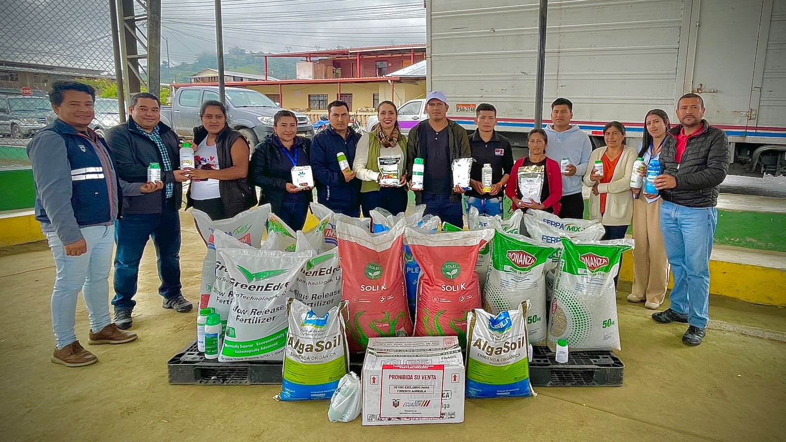 En el componente agrícola, se entregaron 80 Paquetes Tecnológicos Agrícolas, que incluyen fertilizantes e insumos para el control fitosanitario, destinados a cultivos de tomate de árbol, fréjol, guayaba, pastos, maíz, cacao y guanábana, contribuyendo a mejorar el rendimiento y la sanidad de las producciones.