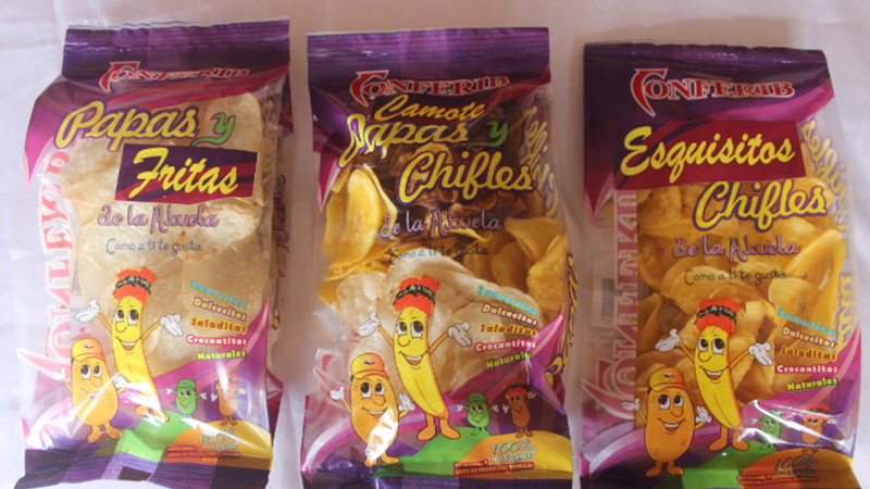 Snacks de productos amazónicos, tales como plátanos, yuca, papa china, habas, camote y más, ofrece la marca Wayna, de la Asociación de Emprendedores en Confitería (CONFERIB), de Puyo, provincia de Pastaza.
