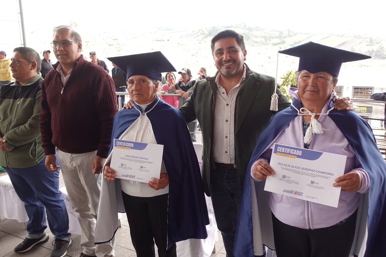 Carchi, 30 de septiembre de 2025.- Paquetes tecnológicos fitosanitarios y/o nutricionales, títulos de propiedad de tierras, certificados de haberse capacitado y graduado en comunidades de aprendizaje, sellos AFC, personerías jurídicas y un estudio de factibilidad y diseño definitivo de un sistema de riego recibieron productores de Carchi, de parte del Ministerio de Agricultura, Ganadería y Pesca (MAGP).