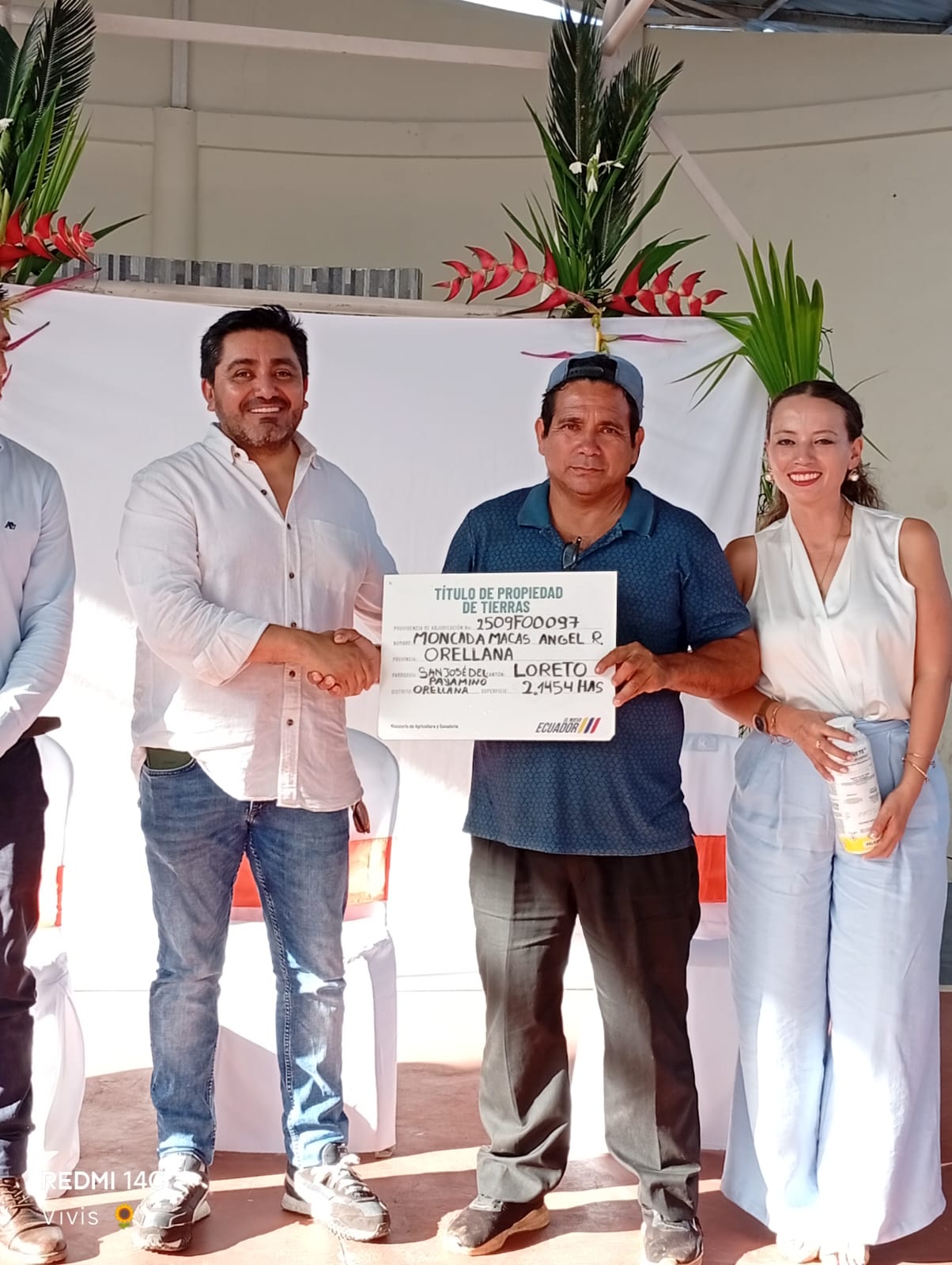 Se entregaron 15 títulos de propiedad para productores de los cantones Francisco de Orellana (6), Loreto (7) y Joya de los Sachas (2), quienes se dedican a cultivos de maíz, café y cacao, así como a actividades ganaderas.