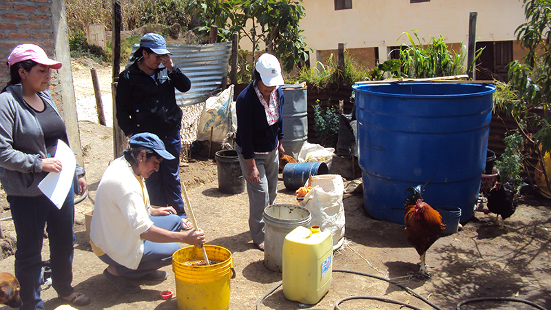 Dieciocho productores de hortalizas aprendieron a realizar repelente para plagas (ajo, ají y guanchaca), biol anaeróbico – fertilizante orgánico (estiércol de vaca, levadura, leche, melaza, cenizas y agua) y; caldo sulfocálcico para plagas y enfermedades (cal P24, azufre, ceniza y agua).