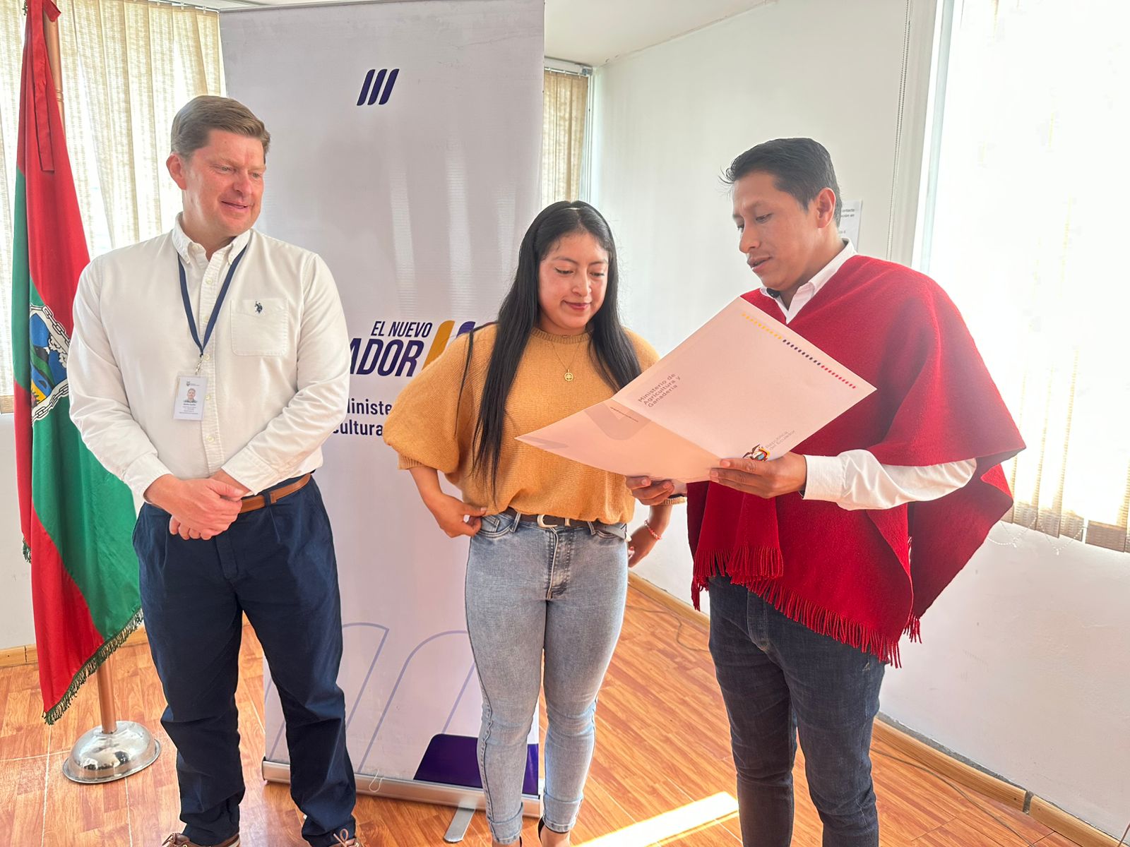 Tunhuragua, 22 de abril de 2026.- Con el objetivo de fortalecer las capacidades productivas y abrir nuevas oportunidades de comercialización para pequeños productores, la Dirección Distrital del Ministerio de Agricultura, Ganadería y Pesca (MAGP), en Tungurahua, entregó siete sellos individuales y un sello asociativo de la Agricultura Familiar Campesina (AFC), que respaldan la calidad y el origen de los productos.