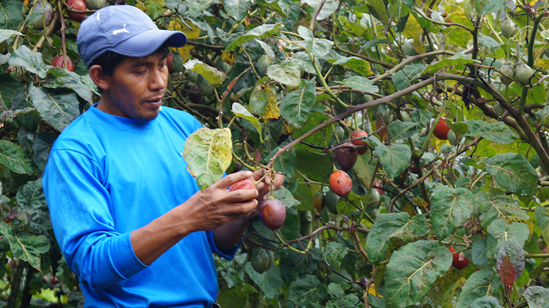 Jorge Chávez, productor de la comunidad de Juive Grande, cantón Baños, contó que desde los 10 años de edad se dedica a la agricultura. Él inició con el cultivo de maíz y hoy -a sus 40 años- se dedica a la producción de mandarina y tomate de árbol. Con este último fruto obtiene los mejores réditos económicos, resultado de la asistencia técnica e innovaciones tecnológicas, como el uso de abonos orgánicos sólidos descompuestos en finca.