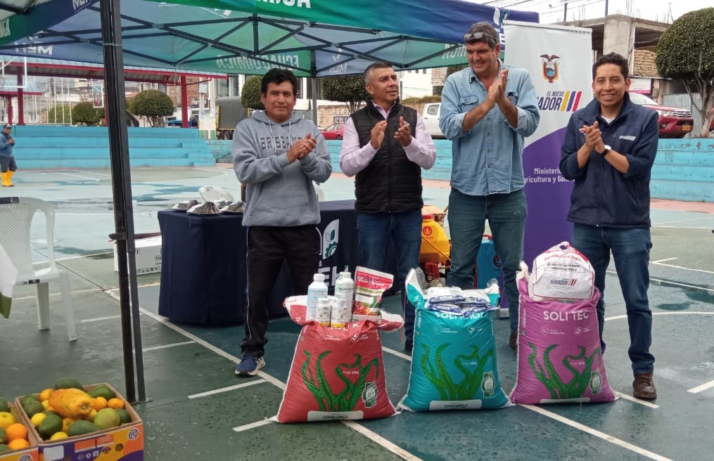 Finalmente, en Pimampiro se entregaron 60 paquetes tecnológicos para control fitosanitario (45 kits destinados al cultivo de aguacate y 15 para cultivo de granadilla), que tienen una inversión de 9.600 dólares. Esto permitirá a los productores mejorar el manejo sanitario de sus cultivos, reducir la incidencia de plagas y enfermedades, así como fortalecer la productividad agrícola.